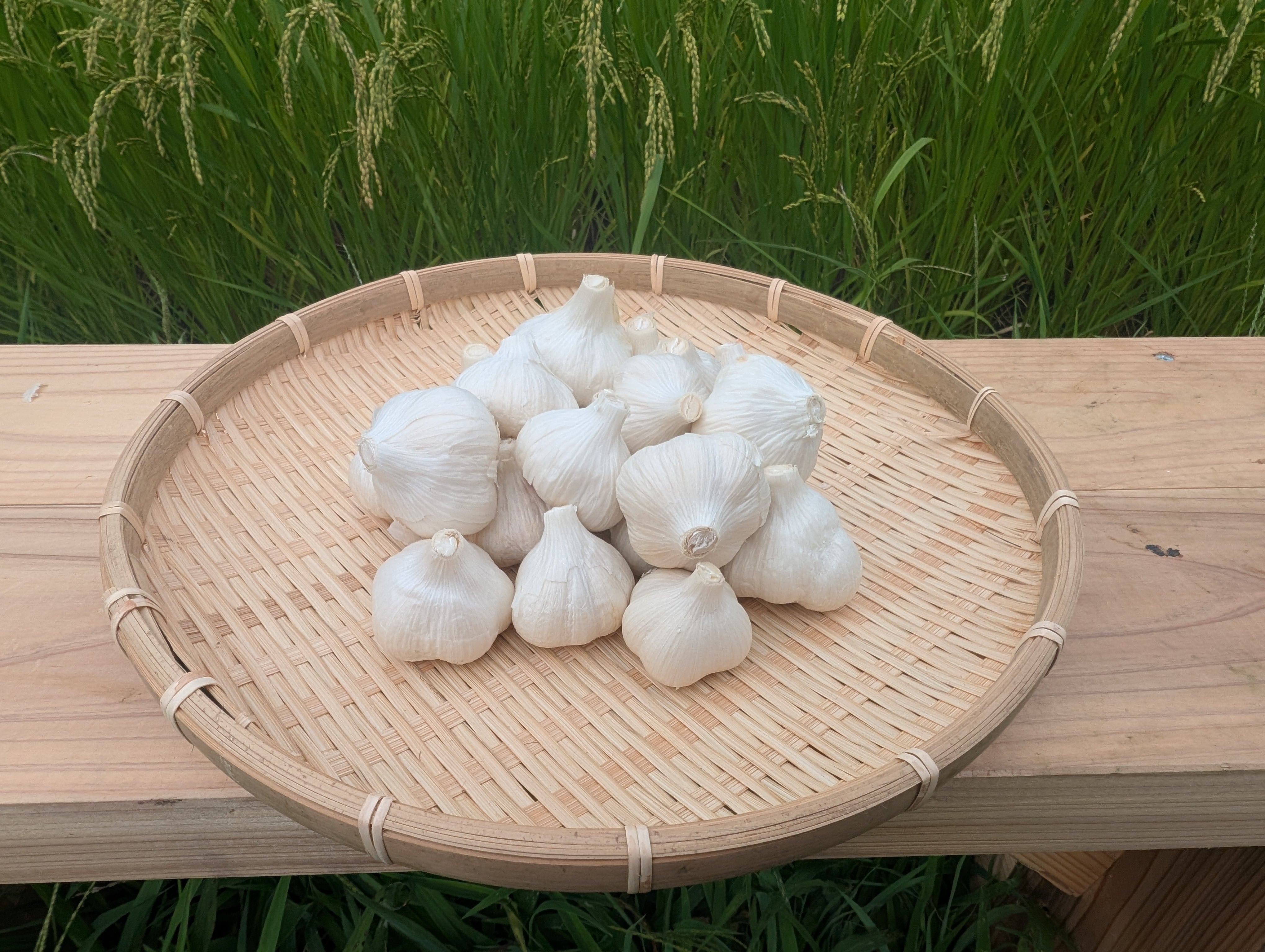 # 自然の恵みを凝縮した、当組合ではSSサイズとされる白にんにくが500gパッケージされています。